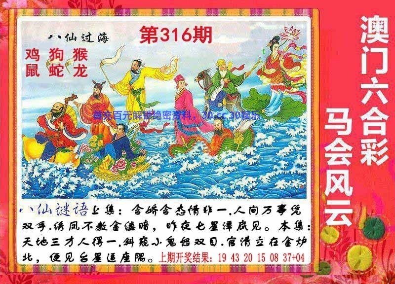 316期八仙谜语:天地三才人得一,斜窥小鬼怒双目,官清立在金炉北,便见台墨逼座隅。 解释:天地三才人得一,斜窥小鬼怒双目,官清立在金炉北,便见台墨逼座隅。解虎蛇马兔狗牛猪 特肖:虎蛇马兔狗牛猪 主肖:虎蛇马兔 特码:16.40.13.25.24.48.15.39.20.32.17.31
